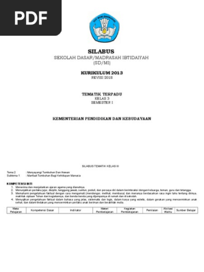for "Silabus Kelas 3 Tema 2 Subtema 1 : Silabus Kelas 1 Semester 2 K13 Revisi Tema 5 Pengalamanku"